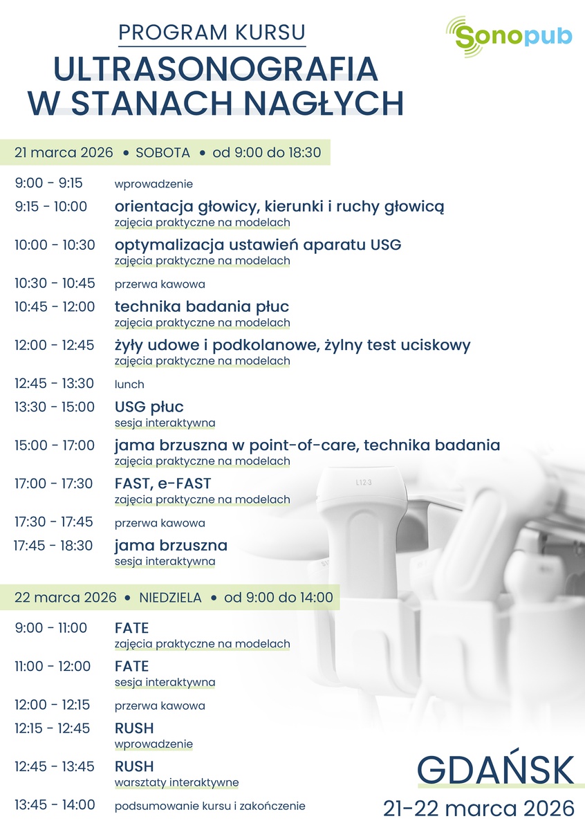 Szkolenie hybrydowe będące połączeniem DWUDNIOWEGO KURSU STACJONARNEGO oraz DOSTĘPU DO 21 WYKŁADÓW ON-LINE jest idealnym rozwiązaniem na początek Waszej przygody z ultrasonografią w stanach nagłych.